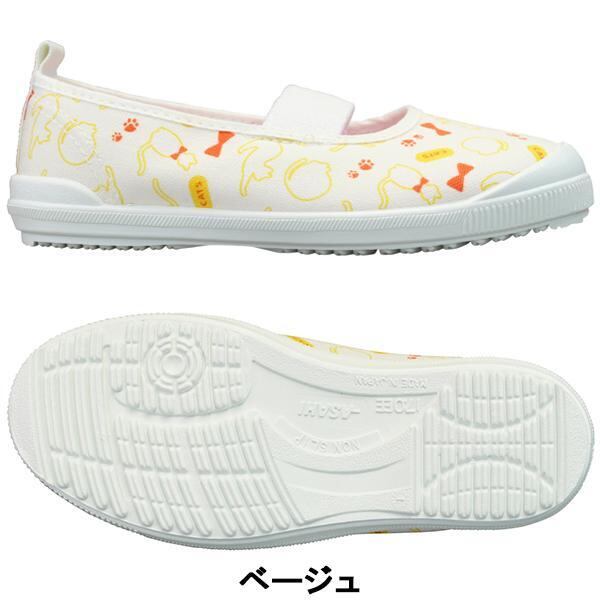 ★アサヒシューズ★日本製!可愛いネコ柄の上履きアサヒS04ベージュ