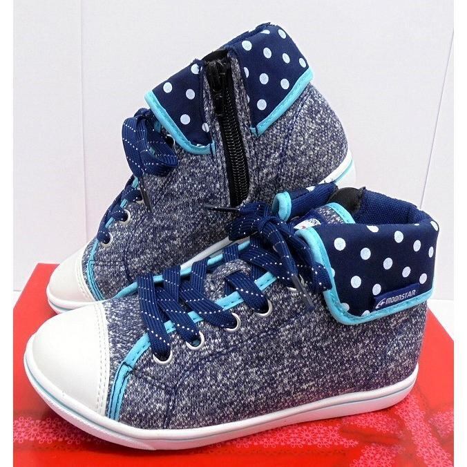 ★ムーンスター★可愛いシュガーのハイカット『アップルワンピース』J462ネイビー19.0センチ