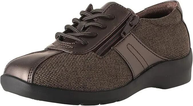 【ワイド設計】幅広の方に対応した商品です。 【やわらか設計】足になじみやすい柔らかな素材を使用しています。 【ふわピタ中敷】低反発ウレタンを使用した中敷で、足に柔らかくフィットします。 【非対称カウンター】外側よりも内側が長いカウンターを搭載することで踵が内側に倒れるのを防ぎます。 【つまずき防止】つまずきにくいアウトソール設計です。 【ガラス防滑ソール】ガラス(粒子、繊維)入りゴム配合で防滑性に優れ、滑りやすい場所でも快適に歩行ができます。 【軽量設計】軽くなるよう工夫を施した設計です。外側にファスナーが付いているので、脱ぎ履きも容易に行えます。 ヒールの高さは3.0cmで、重量は23.0cmで片足約200gの軽量設計です。