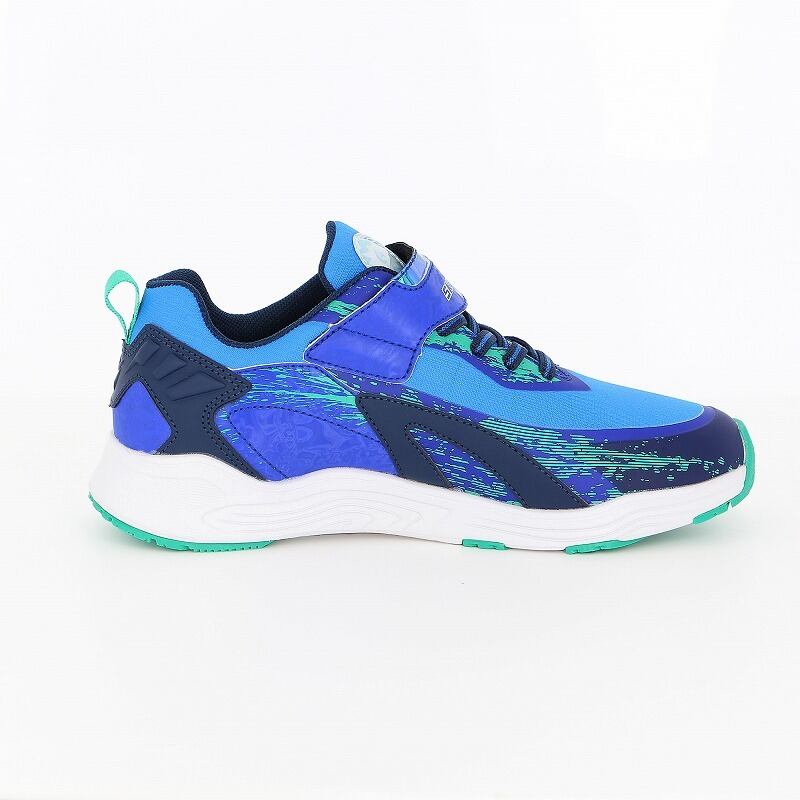 男の子の様々な潜在能力を解き放つ「スキルシューター」の「水(アクア)スキル タイダルウェイブ」です。「スキルを解き放て」をコンセプトに子どもたちの多様化するシーンに合わせた「SKL」をアウトソールに搭載しており、踏み込む際の荷重によって「SKL」が発動します。